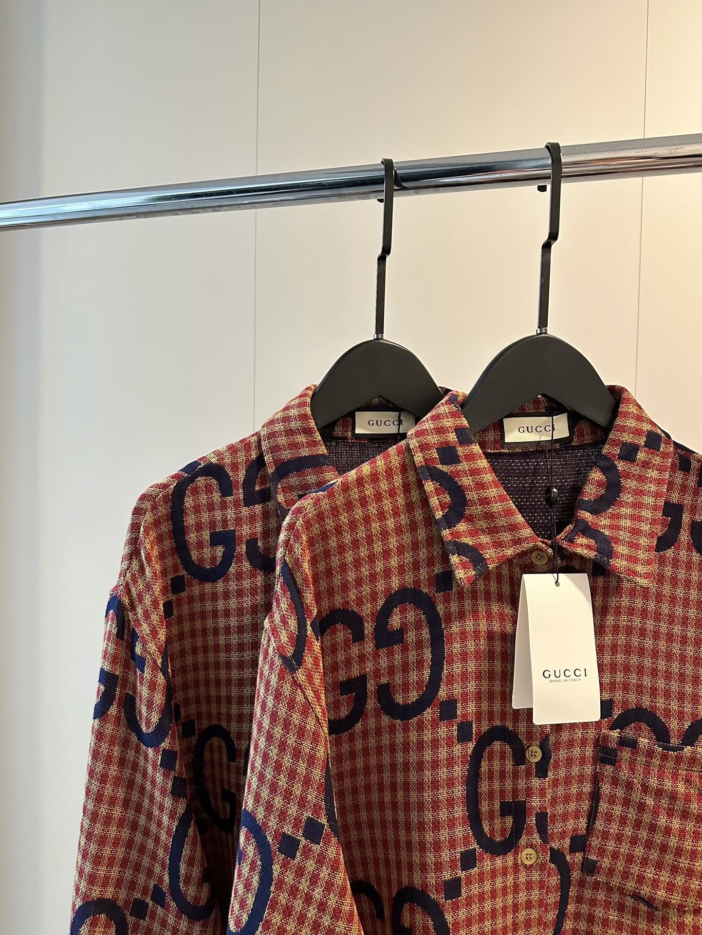 グッチ チェックニットリネンシャツ レディース 高級 A30010