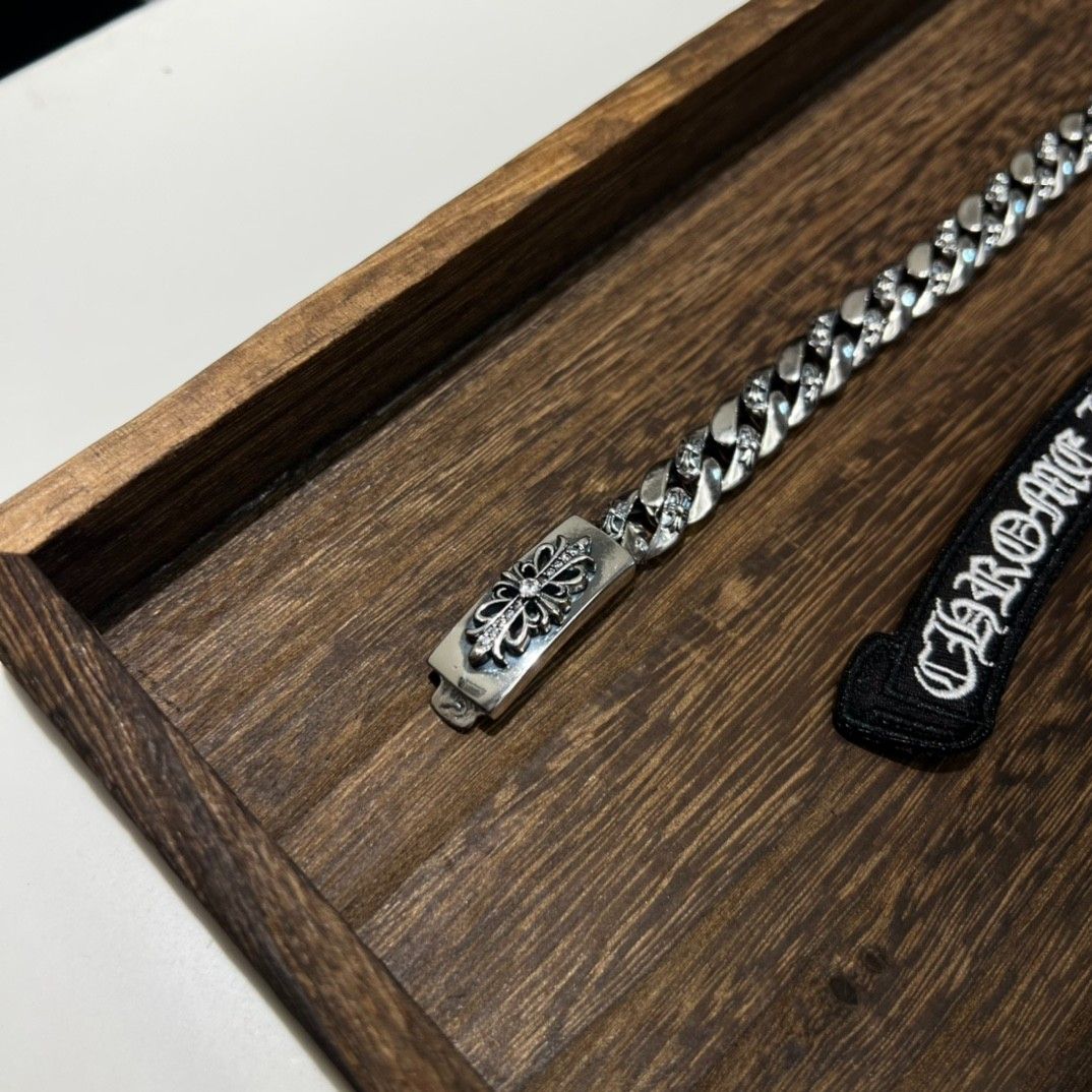 クロムハーツ ブレスレット クロスハーフフラワーストーン s925 A30061