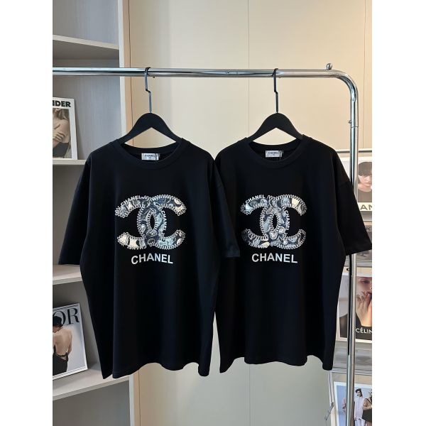 シャネル 半袖Tシャツ スパンコールデニムロゴ刺繍 可愛い A30344