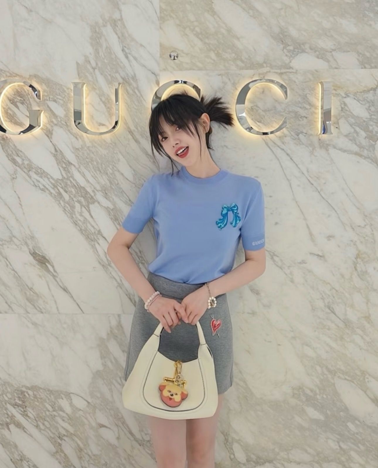 グッチ GUCCI✖️Playful ニット 半袖tシャツ リボン刺繍 可愛い A30380