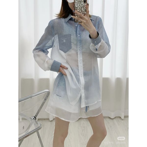 シャネル 上下セット グラデーション 少し透け感のあるシャツ A30464